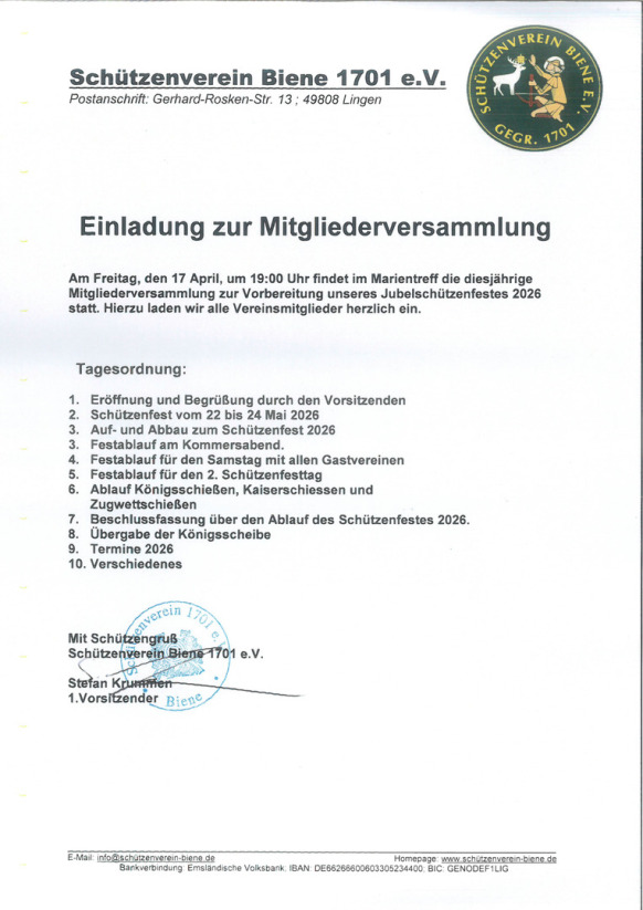Einladung zur Mitgliederversammlung am 17.04.2026 im Marientreff.